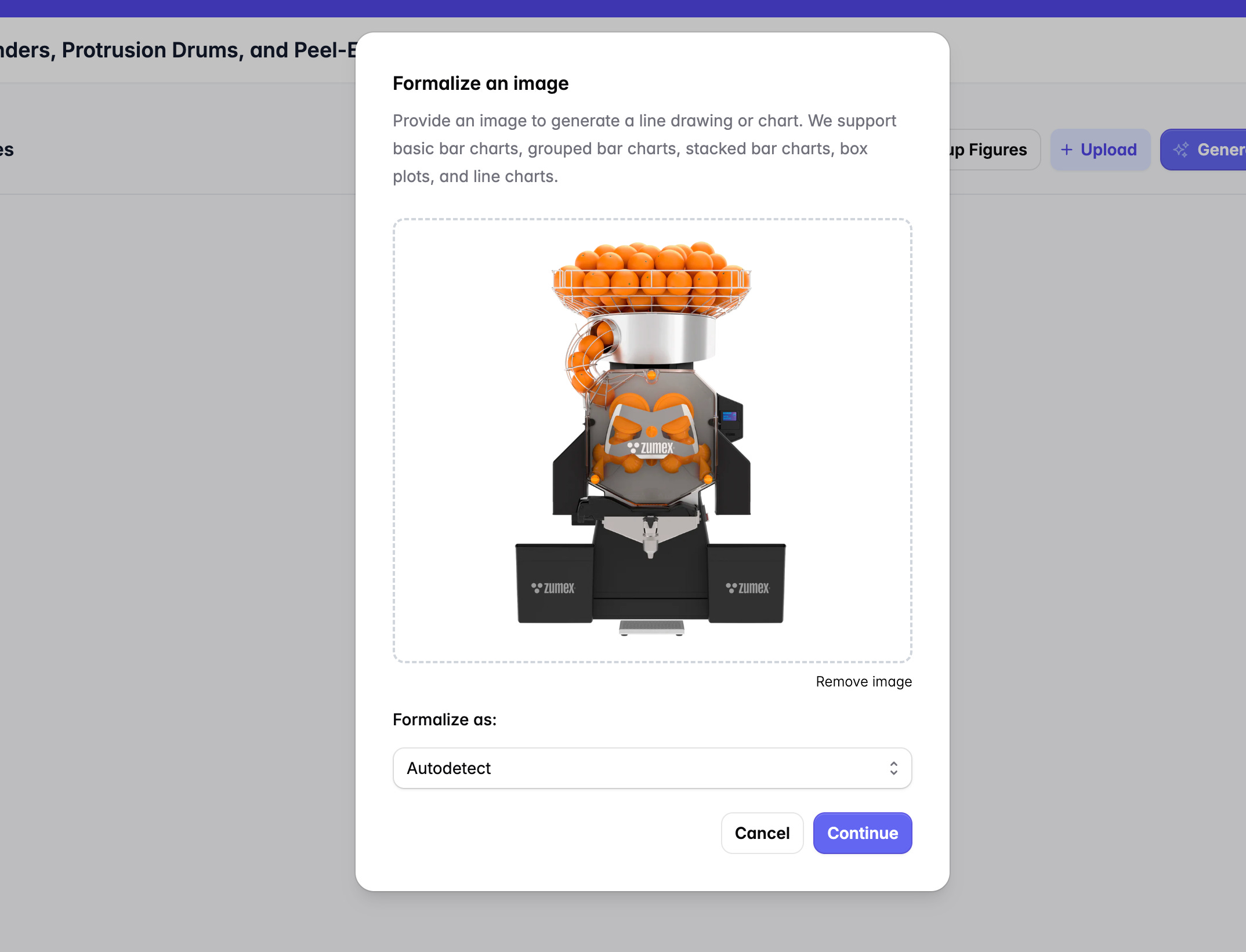 You can now upload figures or create illustrations from scratch. This includes flow charts, text-to-image for in-use figures, and our standard formalization. Edge can also formalize line drawings and charts. No more hatching required.